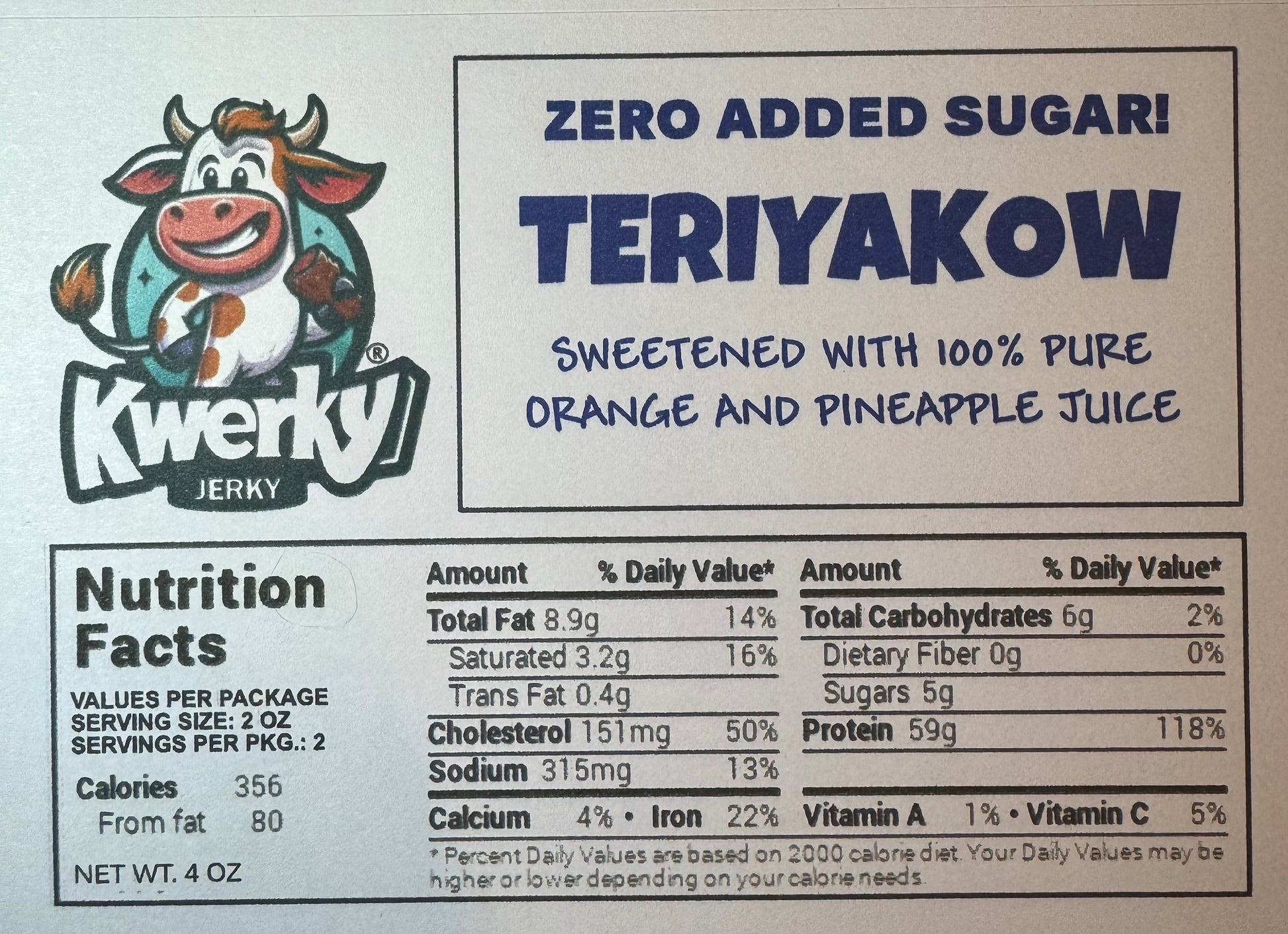 Teriyakow Beef Jerky is not your average snack; Infused with bromalin rich pineapple juice to aid in efficient protein conversion plus tangy orange juice, this cut is healthy and packed with protien. Naturally sweetened with monk fruit, it's a must-have for any jerky aficionado. Post-exercise, morning cravings, afternoon snack or late-night snack, every piece is amazing. Trust us, you won't be disappointed.